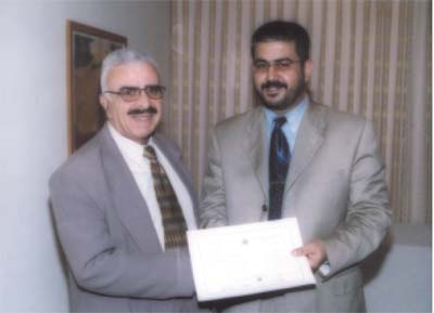 HE Palestinian Minister of Justice - Mr. Nahidh Al-Rayyes - confers upon Dr. Imad Al-Kilani